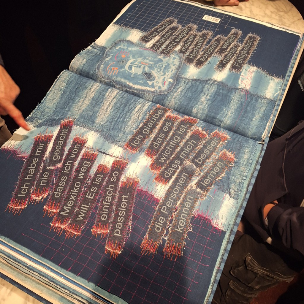 Das Heimatbuch ist ein textiles Buch aus der Zeugfärberei Gutau, entstanden in Zusammenarbeit mit 45 Künstler:innen in verschiedenen textilen Techniken wie Blaudruck, Cyanotypie, Weberei, Stickerei u.a.