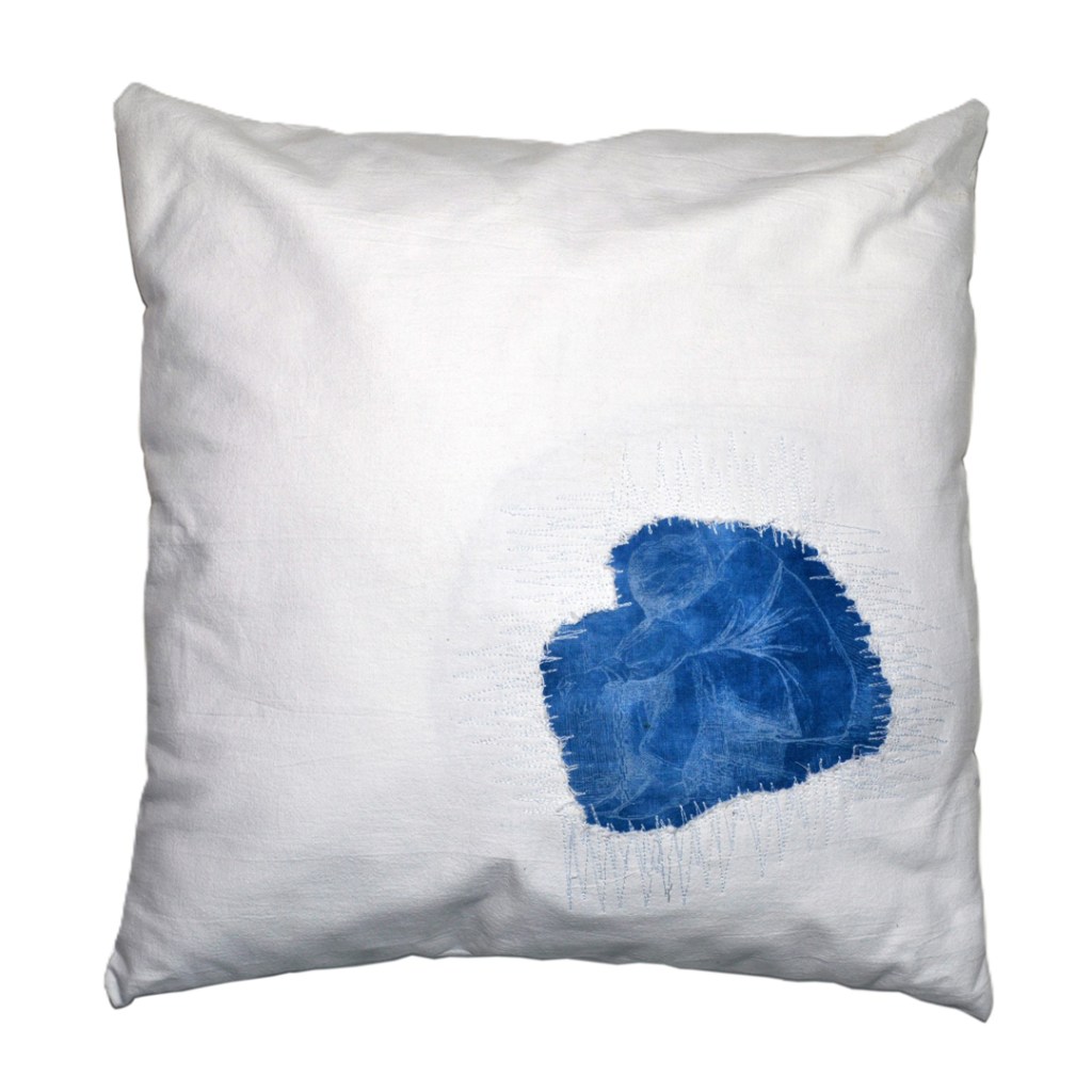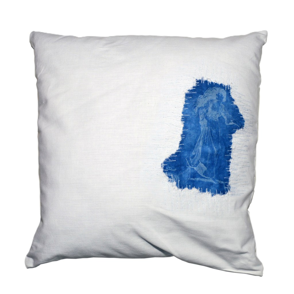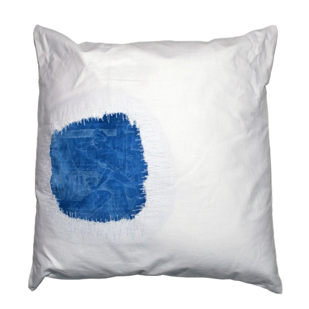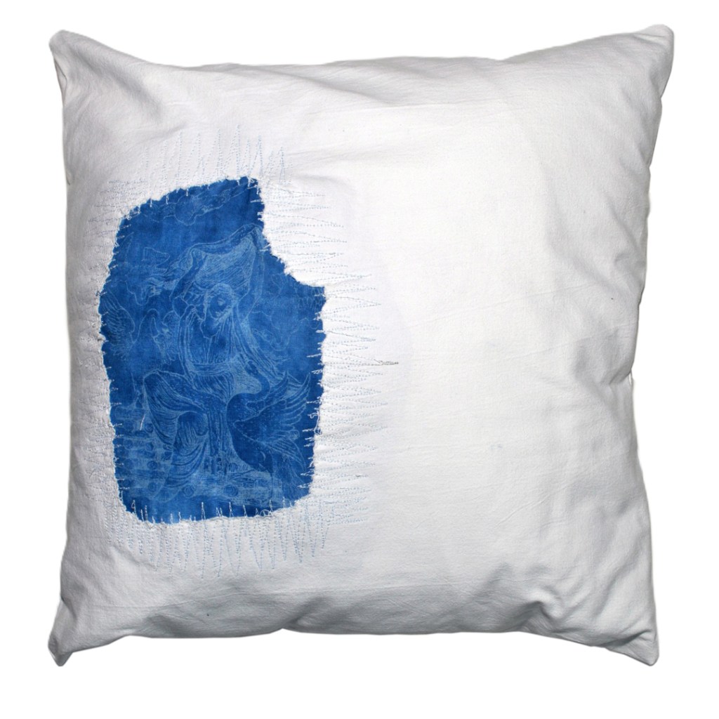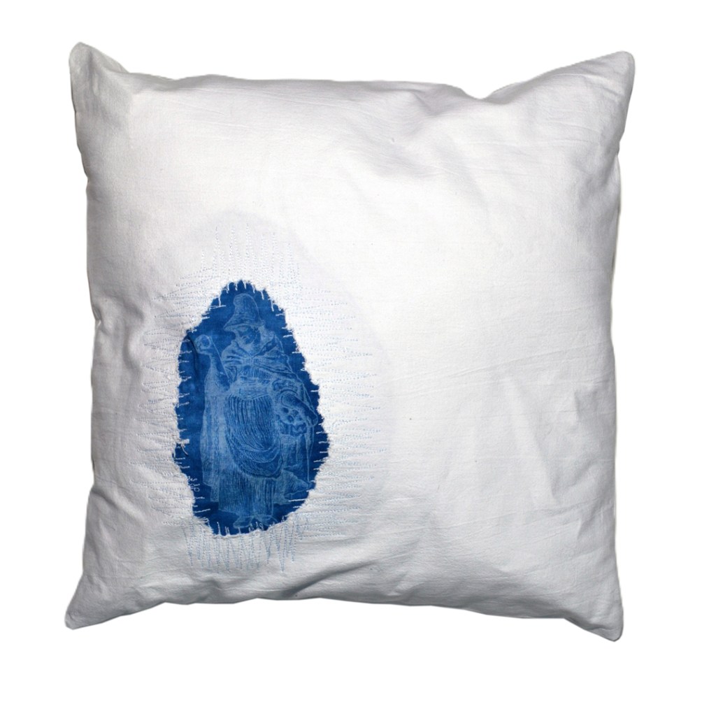Die „Gute Nacht Geschichten“ gehört zu einer wertvollen Tradition den Kindern ein friedliches Entschlummern in die Traumwelt zu ermöglichen und gleichzeitig moralische Werte der Gesellschaft weiterzugeben. Vielen Generationen vor uns wurden Märchen erzählt, die auf Angst und Furcht basierten. Diese Geschichten brannten sich in das Bewusstsein der Kinder ein und es kam vor, dass diese Erzählungen eher Alpträume verursachten. Die Kopfkissen zeigen unterschiedliche Szenen aus bekannten und unbekannten Märchen des 19. Jahrhunderts. Die alten Grafiken wurden in Indigo gefärbte Leintücher gebrannt und, auf aus alter Bettwäsche erstellten Kopfkissen, appleziert.