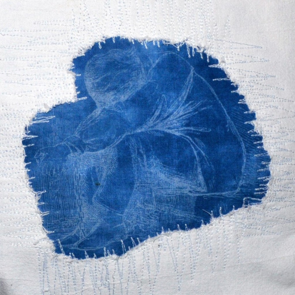 Technik: genäht, gelasert, Indigo handgefärbt,